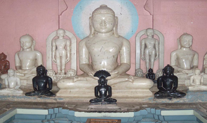 A 17 ½ feet high mountain Khadgasan idol of Bahubali established in 1952. in the temple of Adinath the idol of Adinath and Ajitnath in Ajitnath temple are placed. In front of these temples the idols established in Samvat 2001 are engraved on the 53 feet high Maanstambha and also the idols of twenty Tirthankaras of Videh Khetra are engraved on the nearby pillars. At foot hill. There exist the temples of Neminath, Mahaveer, Ratnatraya and Samvasharan temples is quite artistic.